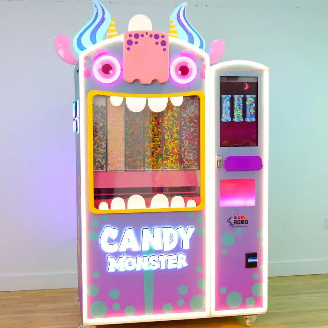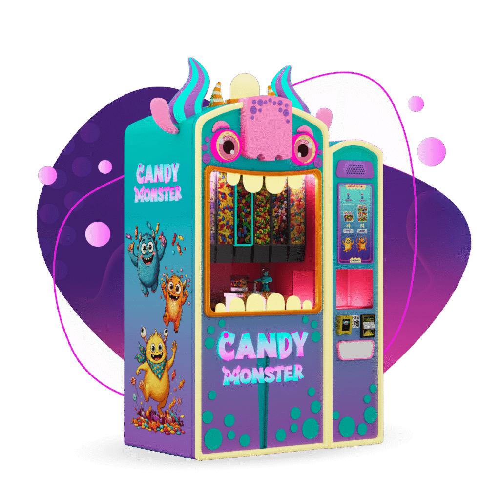 The Candy Monster is a lively, character-themed candy dispenser that instantly catches the attention of children. Shaped like a playful monster with bright colours and glowing features, it houses a small robot that springs into action once a treat is selected. This robot carries a special cup, travels through the monster’s interior, and gathers candy from different compartments, creating a fun spectacle kids love watching. With space for up to six types of popular hard candies, every cup becomes a personalised blend of their favourites.